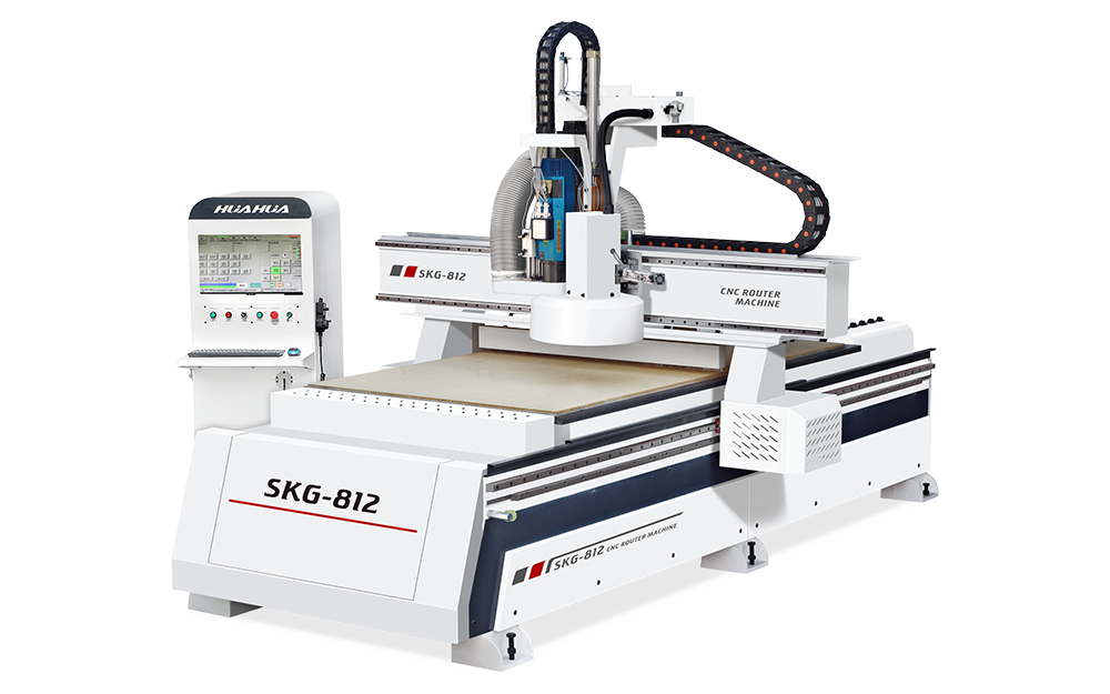 The round type tool magazine can hold 12 tools, and base on the principle of proximity to change tools. It is more efficient to complicated working on wood