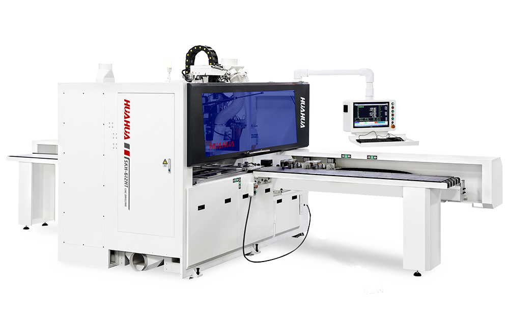 The double clamps mechanism is adopted to automatically control the feeding and positioning of the panel according to the computer drilling program.