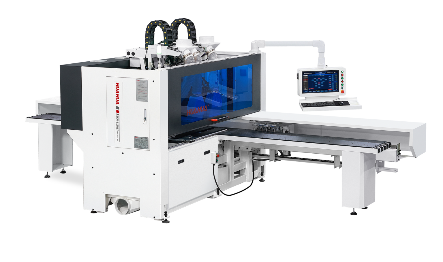 Two high-precision drilling heads for efficient machining, 20% higher production capacity than a single drilling head machine.